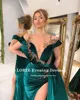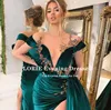 LORIE – robe de soirée en velours pour femmes, col rond, couleur or, vert, haut sur le côté, style sirène arabe