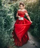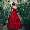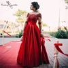 Robe De bal rouge longue en Satin, demi manches, avec des Appliques en dentelle, Corset perlé au dos, grande taille, robe formelle De soirée, 2021