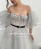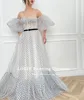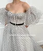 LORIE – robe de bal arabe, manches bouffantes, à pois, longue tenue de soirée blanche et noire, 2021