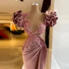 Robe de soirée en velours pour femmes, élégante, manches bouffantes à fleurs, à volants, style sirène, paillettes, grande taille, robes de bal pour concours