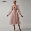 LORIE – robe De Soirée en Tulle, col en v, manches longues, ceinture cintrée, coupe cintrée dans le dos