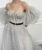 LORIE – robe de bal en Tulle à pois, épaules dénudées, manches bouffantes, ceinture, trapèze