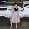 Verngo – robe de soirée rétro trapèze, manches bouffantes, haut en velours, rose, avec des appliques en Tulle, longueur aux genoux, robe de bal