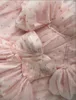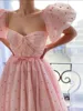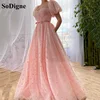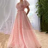SoDigne – robe de bal de forme trapèze rose, à pois, col rond, manches courtes, en Tulle, avec plis et nœud