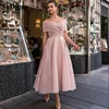 SoDigne – robe de bal rose pour femmes, manches Raglan, robe de soirée brodée, longueur thé, à lacets, pour occasions spéciales