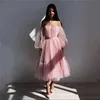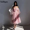 SoDigne – robe de bal en Tulle rose, avec ceinture plissée, manches longues bouffantes détachables, robes courtes de soirée formelles pour femmes