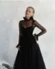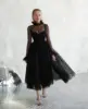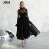 LORIE – robe de soirée en Tulle noire, forme trapèze, manches longues, longueur thé, col haut, tenue de soirée élégante, 2021