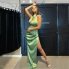 SoDigne – robe de soirée Sexy en Satin, style sirène, col licou, sans manches, longueur au sol, fente latérale, 2021