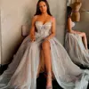 Robe De soirée en Tulle Sexy, fente latérale haute, bretelles Spaghetti, décolleté en cœur, robes De bal avec ceintures, Robe De soirée formelle personnalisée