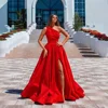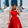 Robe De soirée Simple en Satin, asymétrique épaule dénudée, fente latérale haute, ligne a, plissée, Robe formelle, sur mesure