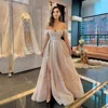 Robe de soirée trapèze pour femmes, épaules dénudées, décolleté en cœur, paillettes, fente latérale, longueur au sol, robes de bal formelles, sur mesure