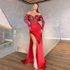 SoDigne – robe de soirée rouge à paillettes, épaules dénudées, manches longues, style dubaï, tenue de soirée de standing, fendue sur le côté