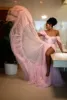 YiMinpwp – robe de soirée longue rose en Tulle, épaules dénudées, dos nu, cuisses hautes, fentes, balayage, traîne, plis, robes de soirée formelles pour femmes
