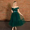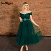 SoDigne – robe de bal en Tulle vert pour femmes, tenue de soirée Simple, à épaules dénudées, avec ceinture, longueur thé