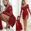 Robe d'invitées de mariage en Satin, Mini robe fourreau rouge modeste et abordable, moulante, en dentelle, en queue de cheval, robes de fête, 2021