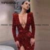 Yipeisha – robe longue de bal à paillettes, sans bretelles, tenue de spectacle, sirène, Sexy, grande taille