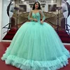Bleu clair Princesse Robes De Quinceanera 2022 Hors De L'épaule Dentelle Tulle 16 Robe Élégante Soirée Formelle Robe De Bal femmes