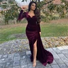 Robe De soirée élégante en velours, bordeaux, fente haute, manches longues, robes d'occasion, 2021