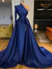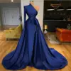 Robe de soirée asymétrique épaule dénudée, manches longues, bleu marine foncé, robe d'occasion, robe de bal en Satin fendue avec traîne, collection 2022