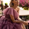 Robe De bal De princesse en crêpe à plusieurs niveaux, asymétrique épaule dénudée, avec ceinture en strass, longue traîne De balayage, luxe, ligne A