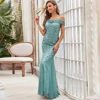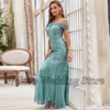 Robe De soirée longue en Tulle et dentelle, élégante, épaules dénudées, paillettes, longueur au sol, Slim, sur mesure