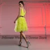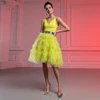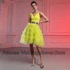 Robe De bal courte en Tulle pour femmes, sans manches, à plusieurs niveaux, col en V, longueur aux genoux, ligne A, jaune, 2021
