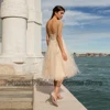 Robe De bal courte en Tulle pour femmes, Corset longueur genou, dentelle à paillettes, demi manches, élégante Robe De Soirée De Mariage