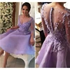 Robe de bal de forme trapèze, robe de Cocktail, manches mi longues, lavande, grande taille, pour remise de diplôme, 15