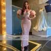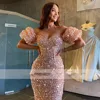 Robe de soirée longue rose à paillettes, épaules dénudées, manches courtes, tenue de bal, 2021