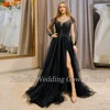 Robe De bal en Tulle De glace noire, Vintage, Sexy, fendue au sol, longue, manches longues, ligne A, col rond, Robe De soirée pour femmes