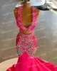 Robe de soirée en forme de sirène, deux pièces, Sexy, élégante, cristaux, perles, longue traîne, à la mode, robes de bal, sur mesure, nouvelle collection