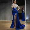 Sumnu – robe de bal de forme sirène, luxueuse tenue de soirée, bleu Royal, col montant, manches longues, avec perles et fente latérale