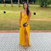 Fivsole – robe De Soirée longue Orange, col en v, bretelles Spaghetti, Sexy, fente latérale, Robes De bal, 2022
