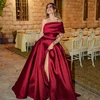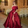 Sumnu – robe de soirée en Satin rouge, asymétrique, épaule dénudée, manches longues perlées, jupe avant fendue, robe de soirée formelle avec poche