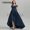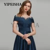 Robe de soirée asymétrique en dentelle, col rond, manches courtes, paillettes appliquées, robe de bal, robes d'occasion