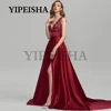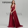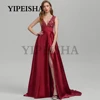 Robe de soirée en Satin, col en v, dos nu, ligne a, avec des Appliques en dentelle sur le devant, fente haute, Simple, robes de bal