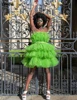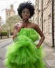 Robe de soirée en Tulle à plusieurs niveaux pour femmes, tenue de soirée courte, verte, Sexy, col licou, sans manches, grande taille, sur mesure