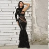 Robe de soirée asymétrique noire, asymétrique épaule dénudée, manches longues, paillettes brillantes, robe élégante pour femmes, robes de spectacle