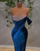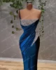 Robe de bal de luxe en velours bleu, Sexy, sans manches, cristaux scintillants, longue sirène, robes de spectacle, sur mesure, nouvelle collection