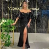 LORIE – longue Robe De bal noire, style sirène, manches bouffantes, fente latérale, Robe De Soirée De Luxe, arabie saoudite