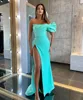 SoDigne – robe de soirée de forme sirène en Satin bleu, asymétrique, épaule dénudée, Sexy, Simple, fente latérale, robes de bal, robe d'occasion de célébrité