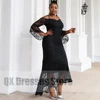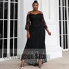 Robe de soirée asymétrique noire en dentelle, tenue de soirée élégante, longueur cheville, Illusion, épaules dénudées, application, 2022
