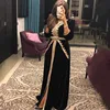 Robe de soirée noire, Caftan marocain, ligne a, manches 3/4, avec des applications en velours, dubaï, arabe, turquie, Abaya, robe islamique