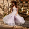 Robe de bal courte en Tulle, violet clair, sans bretelles, ligne a, longueur thé, robes de soirée pour femmes, sur mesure, nouvelle collection 2022
