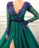 Robe De Soirée De célébrité, tenue De Soirée De couleur verte avec dentelle, manches longues, col en V, fleurs perlées, dubaï, 2022