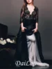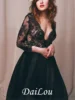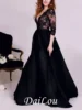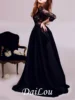 Robe de bal de forme trapèze, longueur au sol, col en v profond, manches 3/4, fermeture éclair, dentelle, devant fendu, 2022