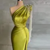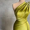 Robe De Soirée en Satin vert, asymétrique, épaule dénudée, avec plis et franges, fente haute, élégante, tenue De bal, nouvelle collection