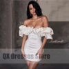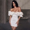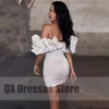 Mini robe de Cocktail en Satin, sans bretelles, à volants, sans manches, robe de bal Sexy pour femmes, gaine plissée blanche, robe courte sirène