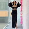 Thinyfull – robe de soirée sirène noire, manches bouffantes, paillettes, fente haute, arabie saoudite, robe de Cocktail, grande taille