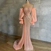 Robe de soirée de forme sirène, tenue de bal Sexy, épaules dénudées, manches bouffantes, fente haute, longueur au sol, grande taille